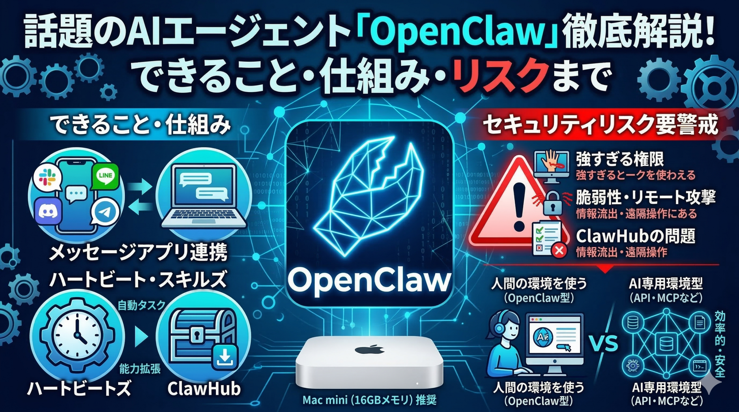 この記事では、OpenClawとは何なのか、何ができるのか、そしてどんなリスクがあるのかを、初心者の方にもわかりやすく解説していきます。